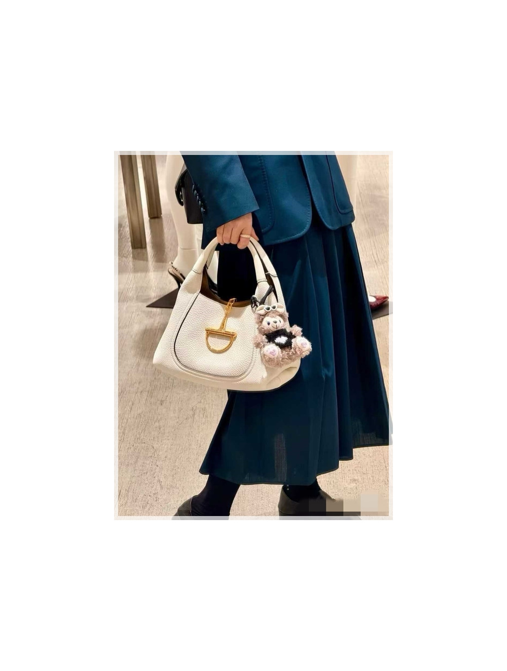 가방의 시각적 중심을 잡고 있어요.